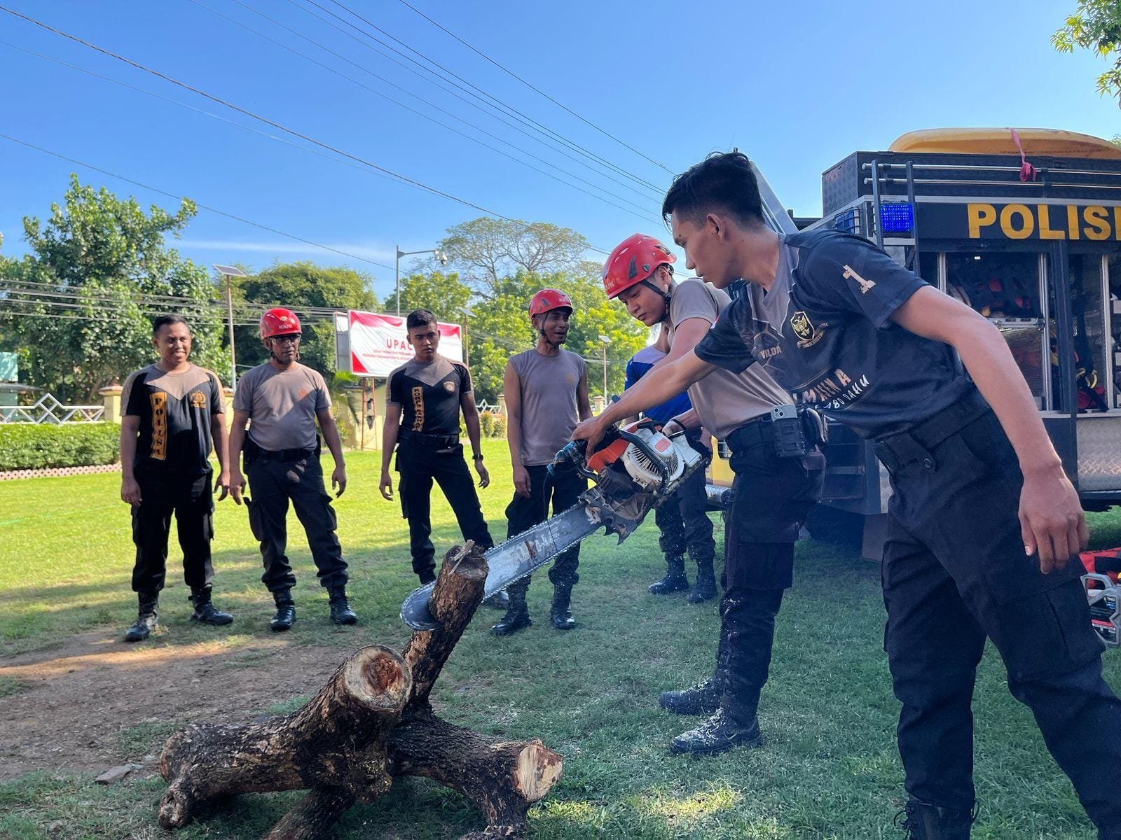 Diharapkan dengan adanya pelatihan yang di gelar secara rutin ini seluruh personel sigap dalam melaksanakan tugas kemanusiaan khususnya dalam penangkapan bencana alam seperti pohon tumbang dan lainnya.